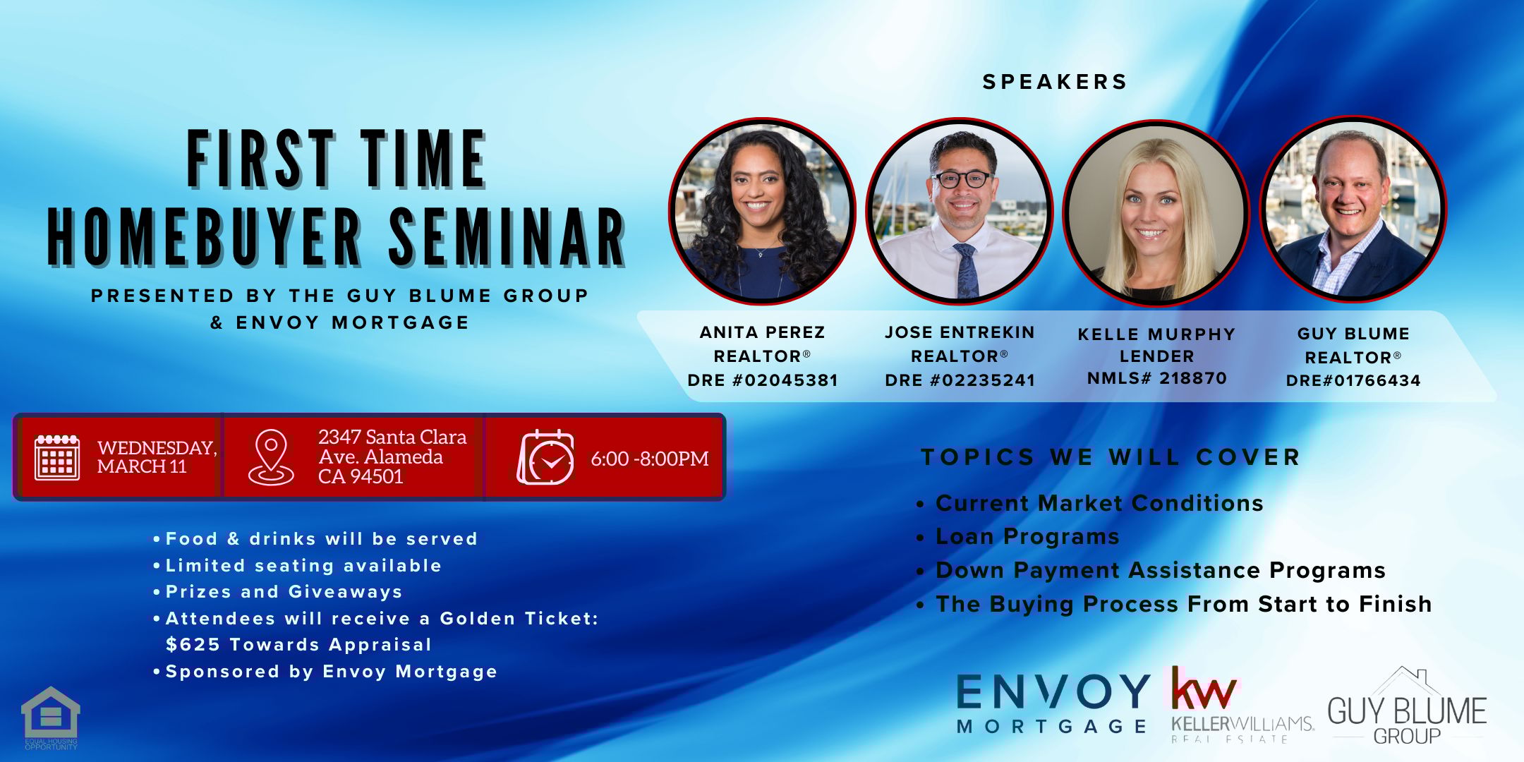 A free in-person seminar designed to help first-time buyers understand the home-buying process with confidence. Local realtors from the Guy Blume Group will walk through current market conditions, loan options, down payment assistance programs, and what to expect from start to finish.